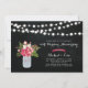 Una elegante invitación de aniversario de bodas rústica con un jarrón de mason y un ramo de flores sobre un fondo de pizarra.