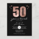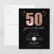Elegantes invitaciones de aniversario de bodas de 50 años con rosas rosadas falsas con brillo y lámina de 50 años amados. El texto se puede ajustar así como los colores de la fuente y el color de fondo. Invitaciones de aniversario de 50 años para adultos.