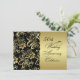 Invitación de aniversario de bodas de 50 años con flores doradas sobre fondo negro. Puede eliminar la imagen "Celebración del 50 aniversario de bodas" y poner su información personal.