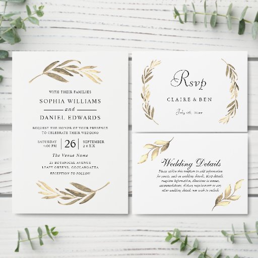 Modern Golden Leaf Wreath Wedding CollectionDiseñado por Chris Ballester