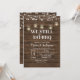 tarjeta de invitación de aniversario con luz de cuerda, tarjeta de invitación rústica con fondo rústico y de madera.
