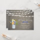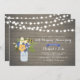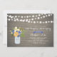 Celebre su día especial con esta elegante invitación de aniversario de bodas. Este diseño presenta un hermoso ramo de flores con un frasco de albañil y luces de cuerda sobre un fondo de madera rústica.