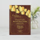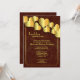 invitación única de aniversario número 50 con fondo de corazones brillantes dorados y patrón floral elegante rojo con marco dorado. Sugiero el papel "metálico" para este diseño.