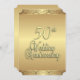 Elaboradas invitaciones de aniversario de bodas de oro para una recepción/fiesta de bodas de 50 años. Frente y dorso dorados con texto marrón en el dorso que dan un aspecto clásico a esta invitación de aniversario única.