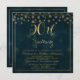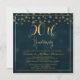 Esta invitación de aniversario de bodas de 50 años es simple pero elegante. Cuenta con un encabezado de caligrafía en falso oro en la parte superior de la invitación y algunos confeti. También he añadido un borde de doble línea delgada en falso oro. El fondo es una imagen texturizada de un azul muy oscuro. Esta elegante invitación de aniversario de bodas de 50 años con caligrafía en falso oro está lista para ser personalizada. Para variaciones de este diseño, por favor visite la tienda.