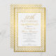 Esta invitación de aniversario de bodas de 50 años presenta un divisor decorativo de lámina de oro falso sobre un fondo blanco. El diseño también incluye un borde de patrón blanco y dorado falso. Esta invitación es adecuada para una fiesta de aniversario de 50 años semiformal o formal. El diseño es elegante y simple. Esta invitación de aniversario de bodas de 50 años de oro falso está lista para ser personalizada.