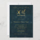 Esta invitación de aniversario de bodas de 50 años es simple pero elegante. Cuenta con un encabezado de caligrafía de oro falso en la parte superior de la invitación. El fondo es una imagen texturizada azul oscuro y la parte posterior de la invitación es una textura de brillo de oro falso. Esta elegante invitación de aniversario de bodas de 50 años con caligrafía de oro falso está lista para ser personalizada. Para variaciones de este diseño, visite la tienda.