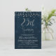 Esta invitación de aniversario de bodas número 25 presenta un encabezado de caligrafía de plata falsa y algunos puntos decorativos en la parte superior. El fondo es una imagen texturizada de un azul profundo. Esta invitación de aniversario de bodas número 25 con lámina de plata falsa está lista para ser personalizada. La plantilla es muy sencilla de editar.