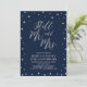 Celebre su día especial con esta elegante plantilla de invitación de fiesta moderna. Este diseño presenta confeti brillante plateado con un fondo azul marino.