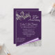 Elegante invitación de fiesta de aniversario de bodas número veinticinco en tono púrpura y plata, con hermosos adornos barrocos y gráficos de borde enrollado en la parte inferior. El texto en blanco está listo para personalizarse según las necesidades de su evento. Hermosa invitación que estará orgulloso de enviar.