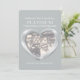 Invitación de aniversario de bodas de platino número 70 con foto. Efecto de impresión de platino líquido en forma de corazón impreso en gráficos para la invitación del 70 aniversario de bodas. Personalice con los detalles de su fiesta de bodas de gris platino y su foto. El 70 aniversario se asocia tradicionalmente con el platino y el corazón simboliza el amor. Gráficos y diseño original de Sarah Trett.