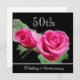 Invitación de aniversario de bodas número 50 con hermosas rosas rojas, totalmente personalizable.