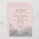 Una elegante invitación de aniversario de boda rosa y plateada con polvo de confeti plateado en la parte superior y brillo plateado en la parte inferior.