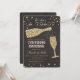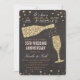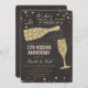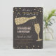 Invitación de tiza y confeti de pizarra para cena de aniversario de boda con copa de vino con diamantes de oro