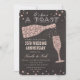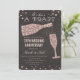 Invitación de tiza de pizarra para cena de aniversario de boda de copa de vino de diamante dorado y confeti