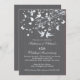 Hermosa y elegante invitación de aniversario de boda de pájaros de amor con un par de pájaros de amor con una rama de árbol adornada con mariposas y corazones sobre un fondo gris oscuro de carbón con rayas de alfiler. Hermoso para una celebración de aniversario de bodas de 25, 30, 40, 45, 50 o 60 años. Disponible en nuestra tienda en una gran variedad de opciones de colores modernos y elegantes.
