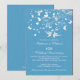 Hermosa invitación de aniversario de bodas de pájaros de amor elegante y moderna que presenta una pareja de pájaros de amor con una rama de árbol adornada con mariposas y corazones colocada sobre un fondo de rayas de alfiler azul turquesa. Hermoso para una celebración de aniversario de bodas de 25, 30, 40, 45, 50 o 60 años. Disponible en nuestra tienda en una gran variedad de opciones de colores modernos y elegantes populares