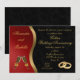 Una invitación de cumpleaños de bodas de oro 50 negro rojo y dorado. Copas de champán brindando y anillos de boda unidos, decoran esta tarjeta de fiesta.