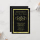 Esta invitación formal de celebración de aniversario de boda cuenta con una imagen de arte de remolino de corazón dorado y un marco dorado a juego colocado sobre un dramático fondo negro. El texto personalizable también está en oro, y la parte posterior de la invitación es negra. **Tenga en cuenta que la imagen se imprime en la tarjeta, que no contiene metal**.