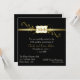 Invitación elegante para el quincuagésimo aniversario de bodas en forma cuadrada con tono negro y dorado. Un fondo negro, con una encantadora banda de tono dorado con florituras. Gráficos de un área de texto enmarcada en oro se sientan sobre la banda y tienen texto que dice 50º. Personalice todo el texto para adaptarlo a las necesidades de su fiesta. Una invitación de aspecto muy elegante y formal. Esta forma cuadrada puede tener un costo mayor en franqueo, verifique en su oficina de correos local las tarifas para sobres de tamaño irregular.