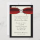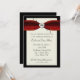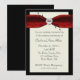 Invitación de aniversario de bodas elegante realizada en crema, rojo y negro. Un fondo en capas de crema y negro, con gráficos de una cinta de satén de color damasco rojo en la parte superior. Un diamante en forma de corazón se asienta sobre la banda, con florituras negras detrás del diamante. Personalice todo el texto para adaptarlo a las necesidades de su fiesta. Una invitación de aspecto muy elegante y formal.