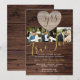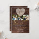 Celebre su aniversario de bodas con estilo con estas elegantes y modernas invitaciones de aniversario de bodas con tema rústico. Destacan un gráfico romántico de un corazón de madera grabado para que agregue las iniciales de los nombres de la pareja de esposos. Presume lo que significa el amor verdadero con sus fotos de pareja. Puede agregar tres fotos en total. ¿Por qué no agregar una foto de cuando se conocieron, cuando se casaron y una de ambos ahora para un impacto extra y crear una invitación única y especial que sus invitados a la fiesta de aniversario de bodas atesorarán. Para obtener ayuda y suministros de fiesta a juego, contacte al diseñador aquí.