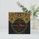 Invitación de aniversario de bodas de lujo inspirada en la India de Oriente Medio con joyas negras, rojas y doradas. Personalice con nombres, fecha de aniversario y monograma o números y otros detalles de la fiesta.