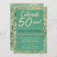 Una invitación elegante y con estilo en verde con dorado para celebrar un aniversario de bodas. Personaliza esta invitación para adaptarla a tu celebración.