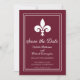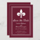 Elegante y simple invitación de anuncio de boda que presenta una fleur de lis sobre un fondo de vino. Este diseño es una opción única para anunciar una boda moderna. Fácil de personalizar con los detalles de su boda. Haga clic en "Personalizar" para encontrar más opciones de personalización.