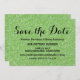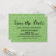 Anuncio de "Save the Date" elegante y sofisticado con un fondo de arte digital con brillo verde. Fácil de personalizar con los detalles de tu boda. Para más opciones de personalización, haz clic en el botón Personalizar. //NO ES BRILLO REAL - IMAGEN PLANA IMPRESA CON ARTE DIGITAL//