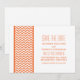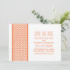 Anuncio de fecha de boda con borde de chevron elegante y moderno que presenta un patrón de chevron simple en naranja y blanco. Este diseño elegante marcará el tono para una boda elegante. Fácil de personalizar, simplemente agregue los detalles de su boda en los campos de texto proporcionados. Haga clic en "Personalizar" para encontrar más opciones de personalización.