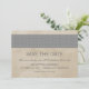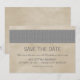 Anuncio de fecha de boda elegante y chic con Damasco Rústico con un fondo de aspecto de papel texturizado vintage y un borde de patrón de damasco floreado en gris. Fácil de personalizar, simplemente agregue los detalles de su boda. Haga clic en "Personalizar" para encontrar más opciones de personalización.