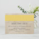 Anuncio de fecha de boda elegante y chic con damasco rústico con un fondo de aspecto de papel texturizado vintage y un borde de patrón de damasco floreado en amarillo. Fácil de personalizar, simplemente agregue los detalles de su boda. Haga clic en "Personalizar" para encontrar más opciones de personalización.