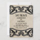 Anuncio de fecha de bodas elegante y chic con remolinos góticos, con un fondo beige texturizado vintage falso y bordes floridos en gris. Este diseño con aspecto antiguo es perfecto para anunciar su boda gótica o vintage. Fácil de personalizar, simplemente agregue los detalles de su boda en los campos de texto proporcionados. Haga clic en "Personalizar" para encontrar más opciones de personalización.