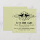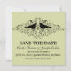 Anuncio de fecha de bodas dulce y simple con Remolinos de Pájaros de Amor, con siluetas de una pareja de pájaros caprichosos y cascadas de florituras elegantes en un fondo verde menta. Esta invitación moderna para guardar la fecha es fácil de personalizar con los detalles de su boda. Haga clic en "Personalizar" para encontrar más opciones de personalización.