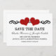 Anuncio de fecha de anuncio de Elegantes Corazones dulce y caprichoso con un borde de remolino elegante adornado con un par de corazones rojos oscuros. Esta invitación moderna para guardar la fecha es la elección perfecta para anunciar tu boda chic y elegante. Fácil de personalizar, simplemente agrega los detalles de tu boda en los campos de texto proporcionados. Haz clic en "Personalizar" para encontrar opciones adicionales de personalización.
