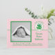 Anuncio de nacimiento de año bisiesto lindo y moderno. Tarjeta ideal para anunciar el nacimiento de un bebé en el día bisiesto 29 de febrero. Cuenta con una rana linda para simbolizar el año bisiesto y dice "Bebé de año bisiesto". Agrega una foto en color o en blanco y negro del bebé. Los detalles del nacimiento se pueden agregar en la parte inferior. Paleta de colores rosa y verde ideal para una niña.