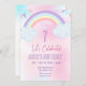 La invitación de cumpleaños de arcoíris pastel presenta un fondo pastel y un arcoíris en la parte superior. Agregue la edad de su hijo y la información de la fiesta.