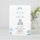 Invitación de cumpleaños número uno para el coche de carreras Fast One con un coche de carreras retro azul.