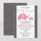 Invitación de Baby Shower 2 Elefantes Rosas Lunares