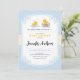 Una adorable invitación a la temática del pato amarillo con 2 patitos amarillos muy lindos disfrutando de algo de tiempo en la bañera, un marco blanco y acentos de puntos polka azules y amarillos. Incluye una impresión de icono de puntos para el reverso. Artículos coincidentes disponibles en la colección 'Yellow Duck Bubble Bath'.