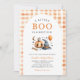 Celebra tu ducha de bebé de otoño con un estilo espeluznante con esta encantadora invitación temática de Halloween. Con una calabaza sonriente, un gorra de brujas estrelladas y un globo naranja festivo, este diseño está envuelto en un acogedor naranja de gingham, perfecto para el otoño. Ya sea que esté planeando un bash rústico o un fiesta interior acogedor, esta invitación marca la pauta para una celebración dulce y un poco espeluznante. Ideal para las duchas de octubre y los futuros padres amantes de la calabaza.
