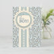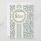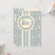 La adorable impresión de jirafa azul con elementos de capas crea un efecto de libro de arañazos en tonos azules y crema y hace un diseño dulce para una ducha de bebé. Al ver el frente, los clientes no dudan de que un bebé está en camino, y en la parte trasera, todos los detalles del fiesta se pueden personalizar según sus necesidades. Cree un hermoso aspecto coordinado con nuestros sellos postales, favorezca a los pegatinas y gracias a las tarjetas: