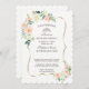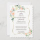 ¡Invitación de Baby Shower! Diseño moderno de tarjeta floral Sparkling Gold Rubor. Cuenta con un elegante marco de Relieve metalizado de color oro falso, flores de color agua blanco y rosa. Utilice la herramienta Personalize para agregar su información. Para ver los elementos coincidentes, por favor, visite mi colección en español de Baby Shower.
