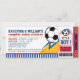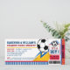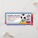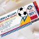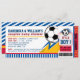 Celebra tu Baby Shower de las Parejas de Fútbol con nuestra verdadera invitación al fiesta de boletos de fútbol para bebes. El Design incluye una pelota de fútbol en un estilo rosado de entrada de un estadio deportivo. Este diseño es perfecto para jugar al fútbol, fiesta de ducha de bebé, futbolín, ducha de bebé, parejas de fútbol o invitación a jugar al fútbol.