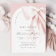 Este elegante Baby Shower Invitation de estilo rosado con arco rosado cuenta con un encantador arco rosa y un diseño único en forma de arco, perfecto para una fantástica ducha de bebé. El suave arco acuarela y el romántico guión manuscrito aportan una moda y un toque sofisticado a la disposición moderna del arco. Con sus preciosos y elegantes detalles, esta invitación es una hermosa manera de marcar el tono para su celebración especial. Además, la plantilla editable facilita el personalizar y crea una invitación realmente personalizada.
