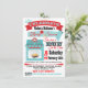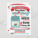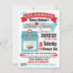 Mostrador de estilo poster super lindo y moderno Género Revelación "Bun in the Oven" invitaciones a la ducha de bebé con agua y horno vintage rojo con tipografía divertida y ilustraciones. Ilustracion dibujado a mano por McBooboo.