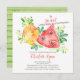 Invitación a la ducha de sandía con trozos de sandía con corazones y piña con hojas tropicales. Invitamos a nuestros huéspedes a ver la parte de atrás de la coordinación para darle un toque especial. Ideal para una ducha de chica, una ducha para niños o una ducha de bebé neutra.