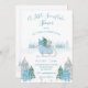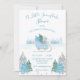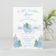Una pequeña invitación a la ducha de un bebé de un oso azul de nieve. Hecho en acuarelas azules y verdes. Un oso pequeño en un trineo rodeado de pinos azules y verdes. Los pinos de la parte de abajo están acentuados por las trampas de plata falsa. Perfecto para esa ducha de bebé de invierno. 100% de satisfacción del cliente con "Zazzle"