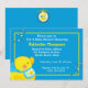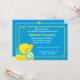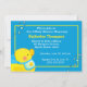 Invitaciones a la ducha de bebé de pato amarillo con fondo azul y un duckie de caucho con un bib. Personalizar con los datos de su fiesta.
